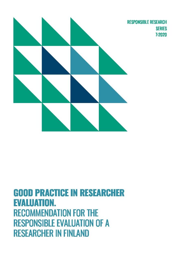 A working group set up by the Federation of Finnish Learned Societies produced guidelines to improve how researchers are assessed in Finland. The report provides a set of general principles (transparency, integrity, fairness, competence, and diversity) that apply throughout 13 recommended good practices to improve four aspects of researcher evaluation, including: