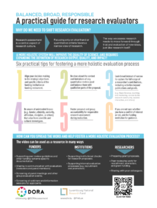 This is part of DORA’s toolkit of resources to support academic institutions that are improving their policies and practices. Find the other resources in the toolkit here.   Balanced, broad, responsible: A practical guide for research evaluators is a short, informative video that is accompanied by a one-page brief. The video and document are meant…